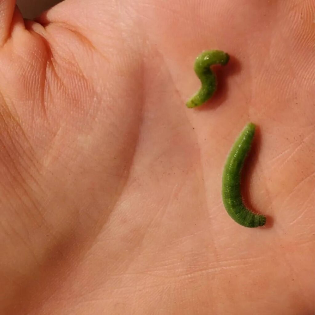 - Checking the undersides of the leaves for eggs, caterpillars, and pupa and removing/ squishing them.