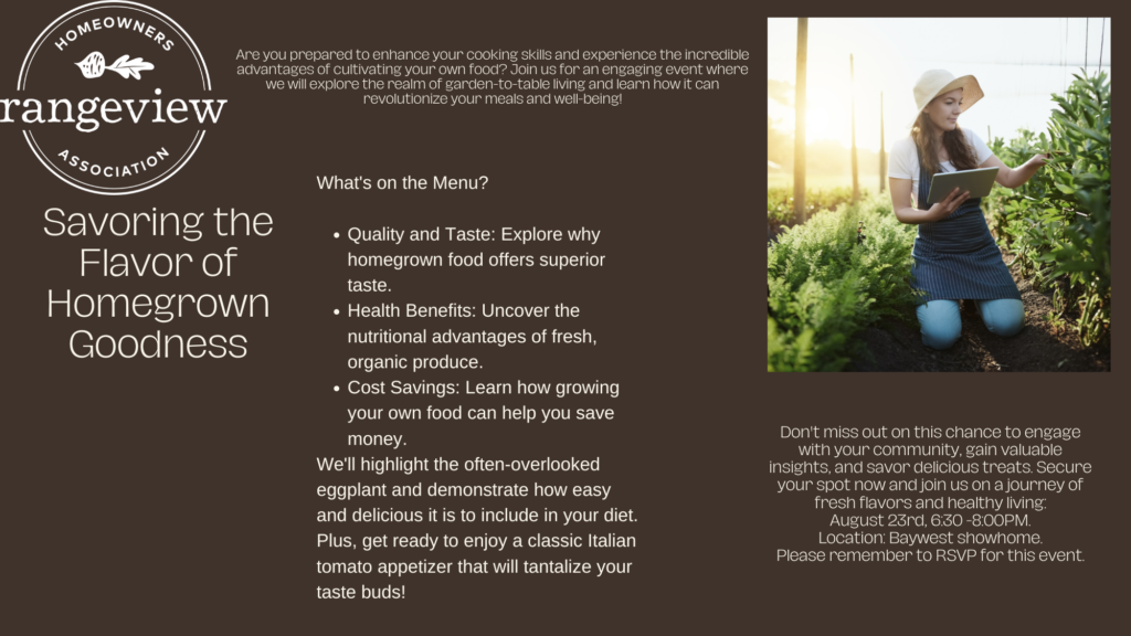 Join us with Enza a resident of Rangeview to discuss the health benefits of growing your own food along with a cooking demonstration of some of our home grown produce.
